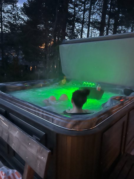 Relax after a day of activities in our well appointed modern cabin with hot tub