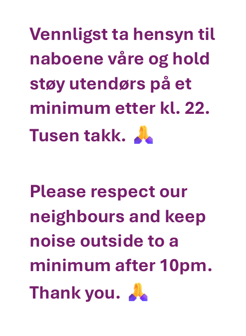 Vennligst hold støynivået i boblebadet på et minimum etter kl. 22. 😊